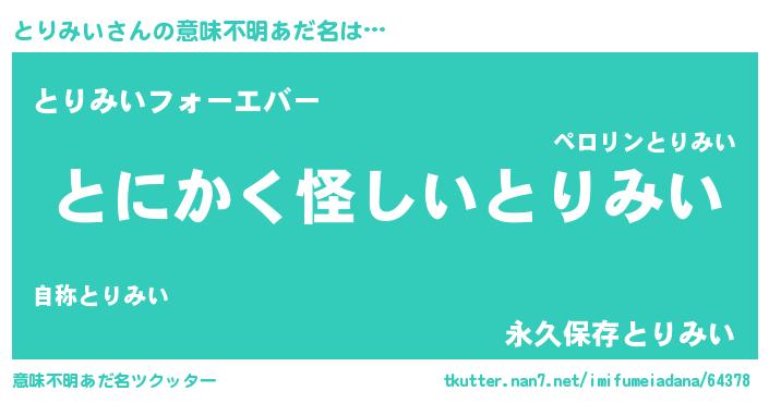 | 男性向けラノベタイトル風あだ名 | 『とりみいの嫁は女の子じゃないと思った?』 |