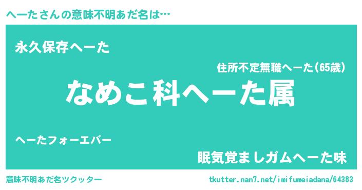 | 男性向けラノベタイトル風あだ名 | 『転生したらへーただった件』 |