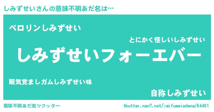 | 欧米人風あだ名 | 『しみずせいクリステル』 |