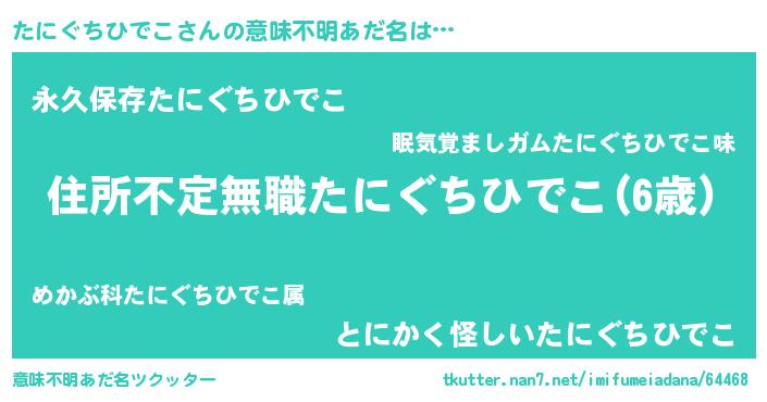 | 男性向けラノベタイトル風あだ名 | 『この素晴らしい世界にたにぐちひでこを!』 |