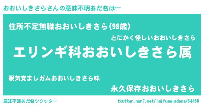 | 欧米人風あだ名 | 『アンジェラ・おおいしきさら』 |