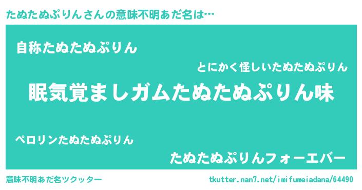 | 男性向けラノベタイトル風あだ名 | 『たぬたぬぷりんに滅ぼされるだけの簡単なお仕事です』 |