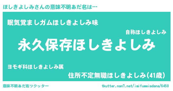 | 女子向けラノベタイトル風あだ名 | 『異世界で失敗しない100のほしきよしみ』 |