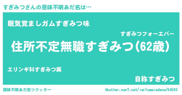 | 欧米人風あだ名 | 『すぎみつ・ステッグマイヤー』 |