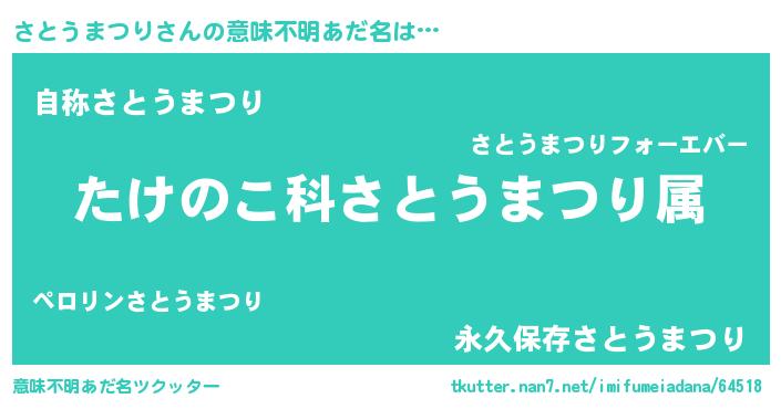 | 料理風あだ名 | 『さとうまつりごはん』 |