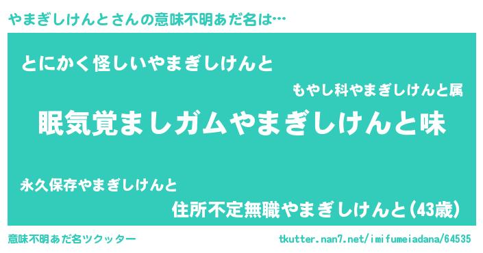 | 男性向けラノベタイトル風あだ名 | 『おまえをオタクにしてやるから、俺をやまぎしけんとにしてくれ! 』 |