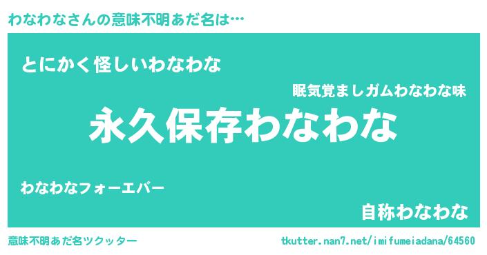 | 男性向けラノベタイトル風あだ名 | 『わなわなに滅ぼされるだけの簡単なお仕事です』 |