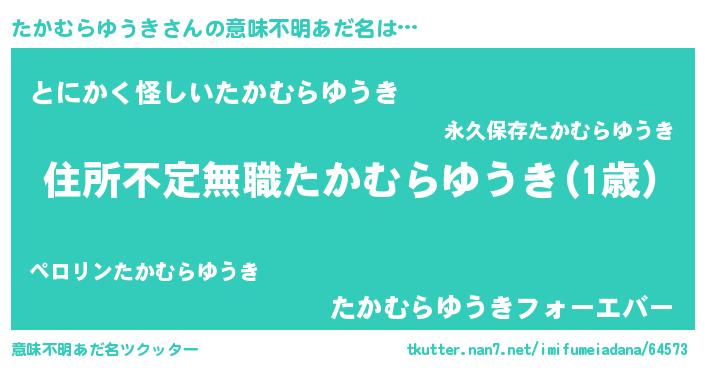 | 男性向けラノベタイトル風あだ名 | 『この素晴らしい世界にたかむらゆうきを!』 |