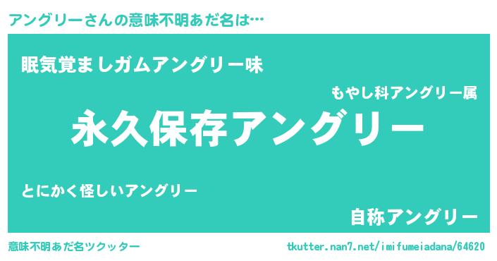 | 女子向けラノベタイトル風あだ名 | 『アングリーの契約王妃』 |