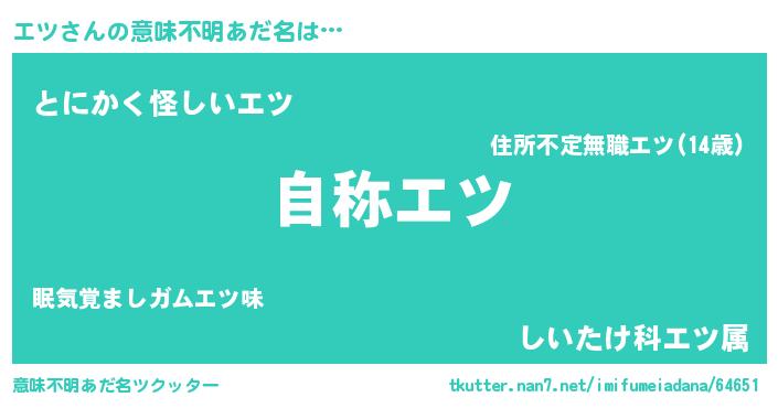 | 男性向けラノベタイトル風あだ名 | 『Re:エツから始める異世界生活』 |