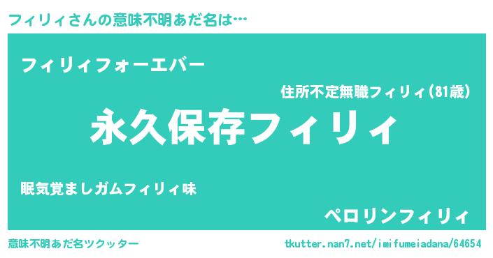 | 胡散臭い通販商品みたいなあだ名 | 『絶対に幸福をもたらす水素水…その名も「フィリィ」』 |