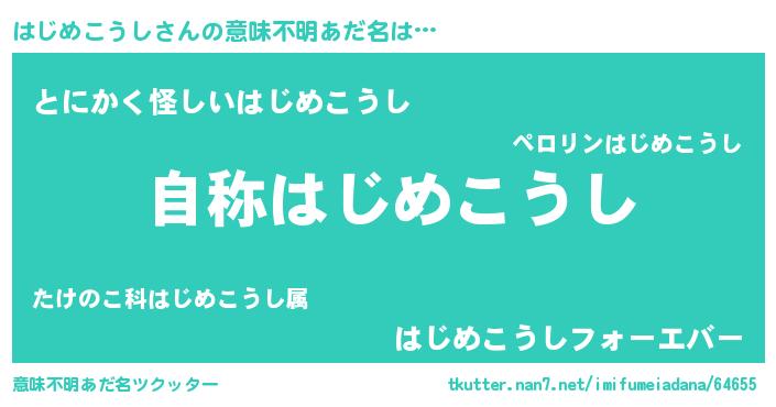 | 女子向けラノベタイトル風あだ名 | 『はじめこうしなんてお断りですっ。』 |