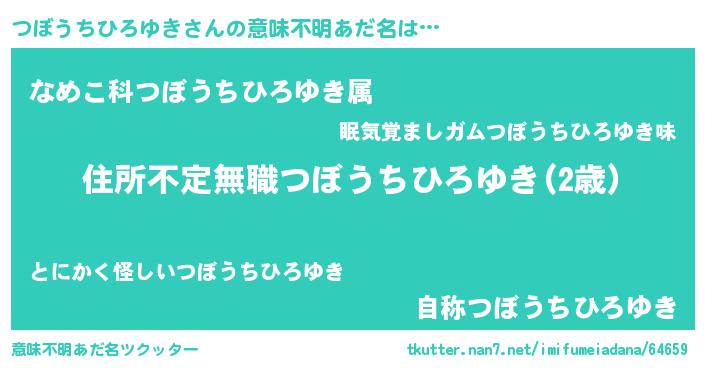 | 胡散臭い通販商品みたいなあだ名 | 『あなたにだけ特別に提供する100年もののヴィンテージワイン…その名も「つぼうちひろゆき」』 |