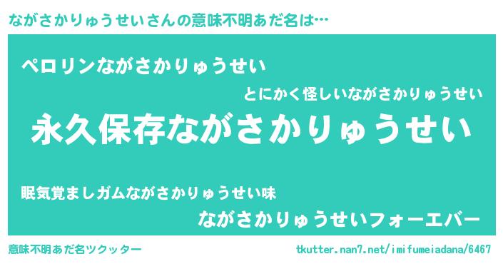 | 男性向けラノベタイトル風あだ名 | 『ながさかりゅうせいという概念が存在しない退屈な世界 』 |