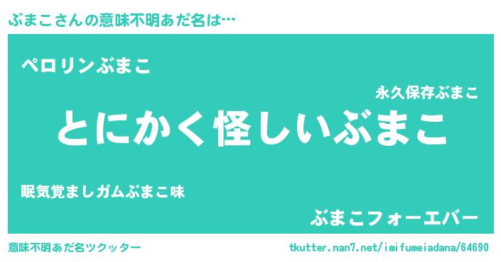| 女子向けラノベタイトル風あだ名 | 『ぶまこの卵を拾いまして』 |