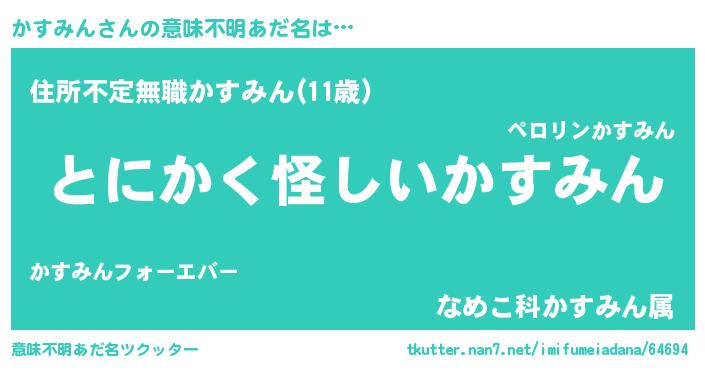 | 男性向けラノベタイトル風あだ名 | 『かすみんの嫁は女の子じゃないと思った?』 |