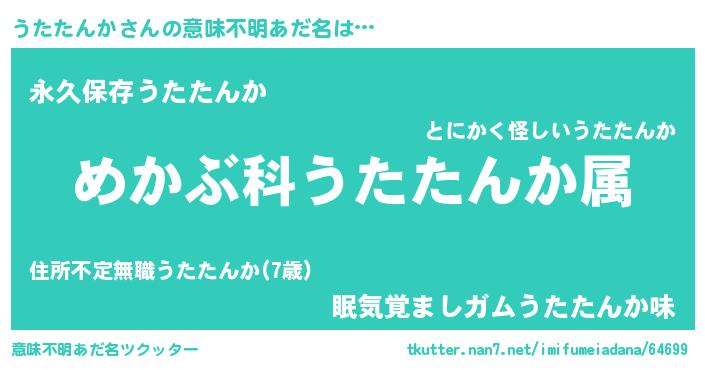 | 胡散臭い通販商品みたいなあだ名 | 『絶対に幸福をもたらす健康食品…その名も「うたたんか」』 |