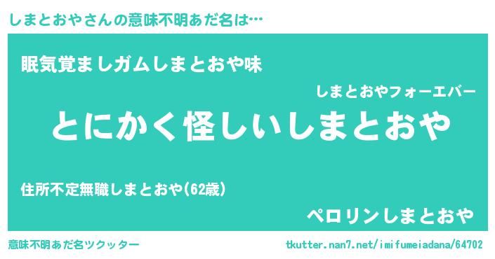 | 胡散臭い通販商品みたいなあだ名 | 『伝統あるペンダント…その名も「しまとおや」』 |