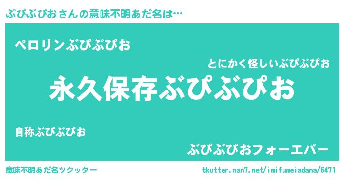 | 男性向けラノベタイトル風あだ名 | 『ぶぴぶぴおという概念が存在しない退屈な世界 』 |
