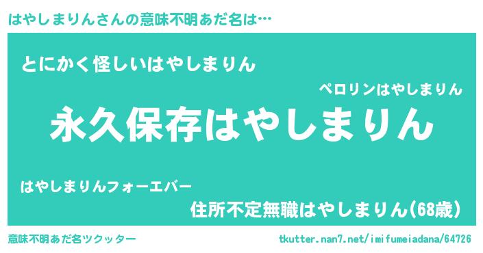 | 胡散臭い通販商品みたいなあだ名 | 『来世でも幸せになれる水素水…その名も「はやしまりん」』 |