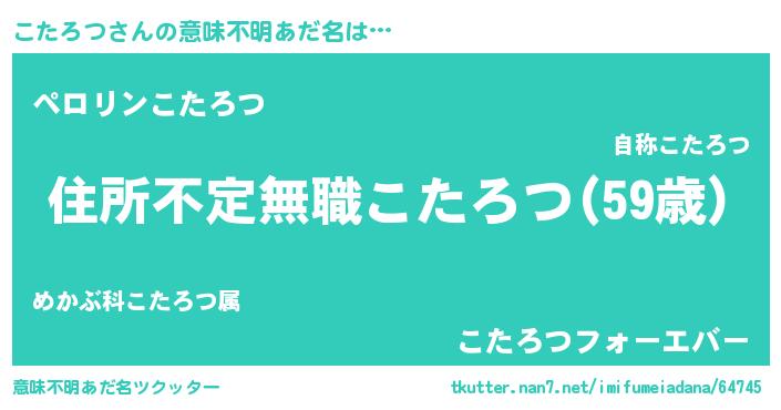 | 男性向けラノベタイトル風あだ名 | 『魔弾の王とこたろつ』 |