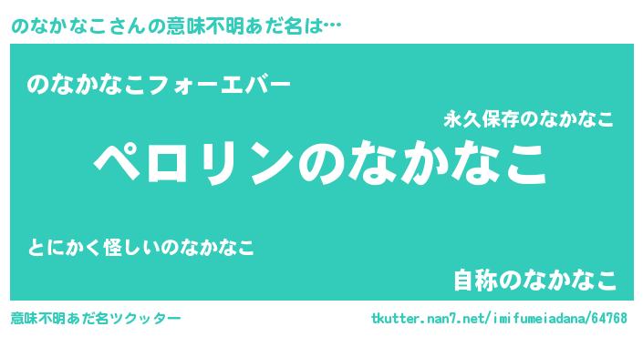 | ファンタジー風あだ名 | 『ノナフェル』『エターナルノナカナコー』 |