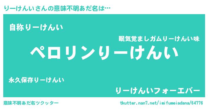 | 男性向けラノベタイトル風あだ名 | 『りーけんいの憂鬱』 |