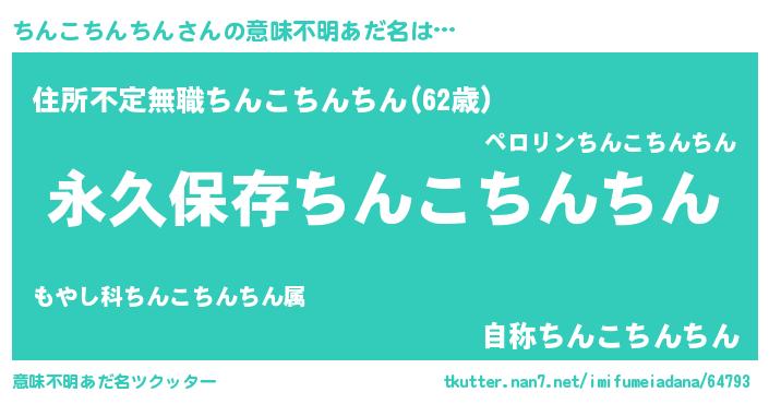 | 伝説のあだ名 | 『古文書に記された暗殺者ちんこちんちん』 |
