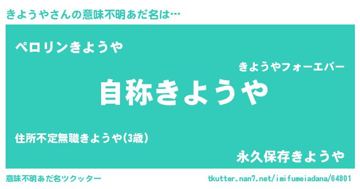 | ヒーロー風カッコイイあだ名 | 『究極戦士キヨウヤ』『スーパーキヨウヤ』 |