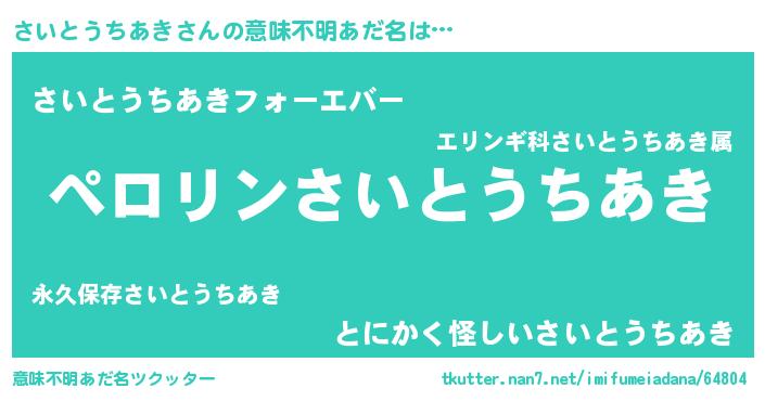| 男性向けラノベタイトル風あだ名 | 『さいとうちあきの憂鬱』 |