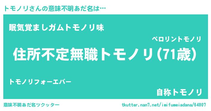| 男性向けラノベタイトル風あだ名 | 『はたらくトモノリさま!』 |