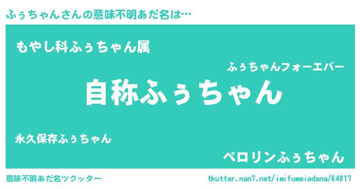 | 男性向けラノベタイトル風あだ名 | 『Re:ふぅちゃんから始める異世界生活』 |