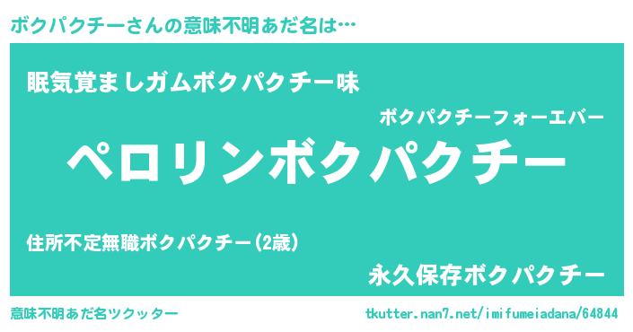 | ヘコむあだ名 | 『ボクにゅー』『ボクパクチー(小並感)』 |