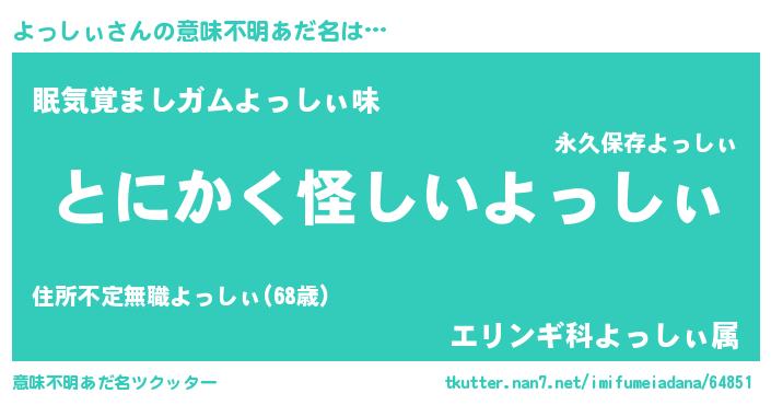 | ヒーロー風カッコイイあだ名 | 『炎刃騎士ヨッ』『正義の使者よっしぃ』 |