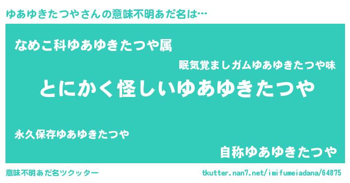 | ヘコむあだ名 | 『ゆあを』『ゆあゆきたつや(笑)』 |