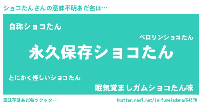 | 男性向けラノベタイトル風あだ名 | 『ショコたんという概念が存在しない退屈な世界 』 |