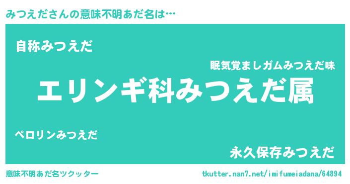 | ヒーロー風カッコイイあだ名 | 『超時空戦士ミツエダ』『ネオミツエダ』 |