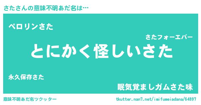 | 料理風あだ名 | 『さたの豆乳スープ』『さたのトマト煮』 |