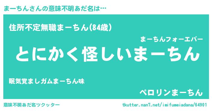 | 胡散臭い通販商品みたいなあだ名 | 『信頼と実績のサプリメント…その名も「まーちん」』 |