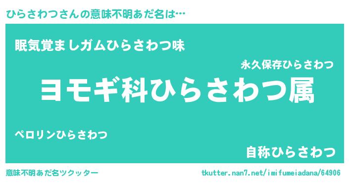 | 男性向けラノベタイトル風あだ名 | 『ひらさわつ~年齢イコール彼女いない歴の魔法使い~』 |