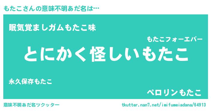 | 女子向けラノベタイトル風あだ名 | 『もたこの卵を拾いまして』 |