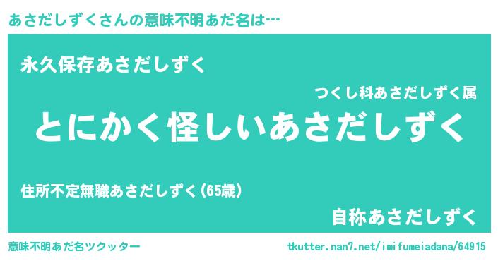 | ヒーロー風カッコイイあだ名 | 『幻影騎士アサ』『ネオアサダシズク』 |