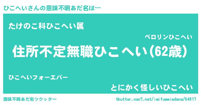 | 女子向けラノベタイトル風あだ名 | 『乙女ゲームの破滅フラグしかない悪役ひこへいに転生してしまった…』 |