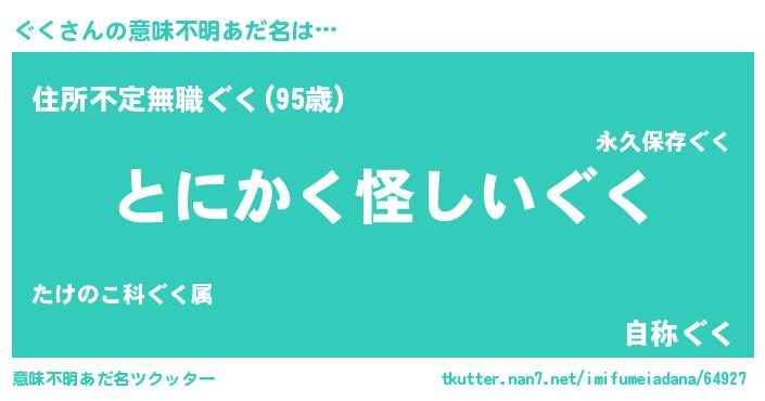 | ヘコむあだ名 | 『ぐくを』『ぐく(遠い目)』 |