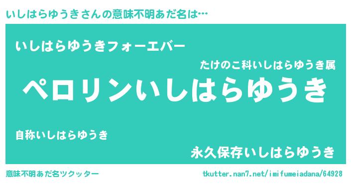 | 男性向けラノベタイトル風あだ名 | 『いしはらゆうきの憂鬱』 |