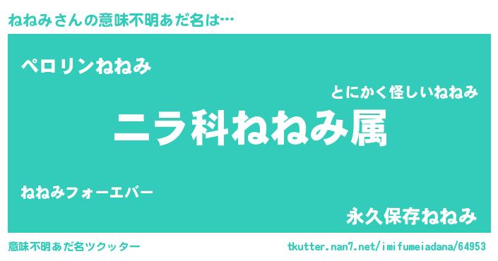 | 肩書あだ名 | 『ねねみ上級大将』『ねねみ御曹司』 |