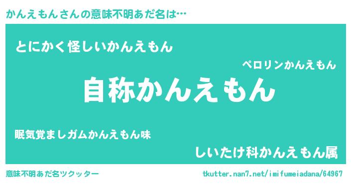 | 男性向けラノベタイトル風あだ名 | 『Re:かんえもんから始める異世界生活』 |