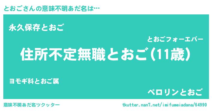 | 男性向けラノベタイトル風あだ名 | 『魔弾の王ととおご』『緋弾のトオゴ』 |