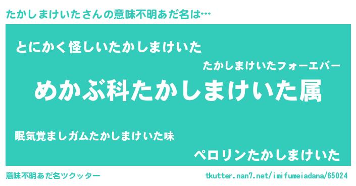 | 男性向けラノベタイトル風あだ名 | 『タカシマケイタスレイヤー』 |