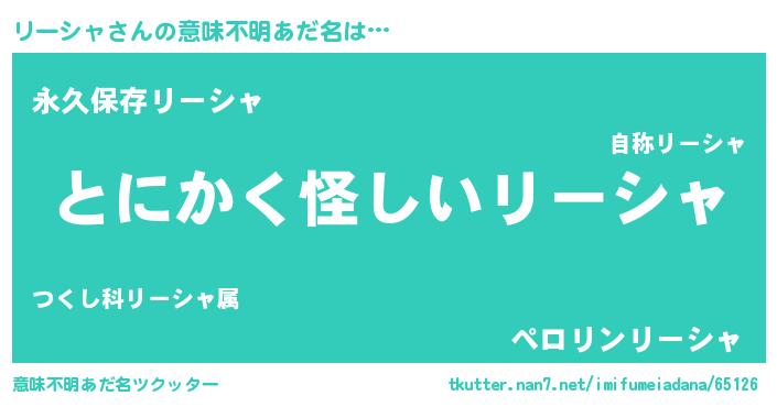 | 男性向けラノベタイトル風あだ名 | 『リーシャに滅ぼされるだけの簡単なお仕事です』 |